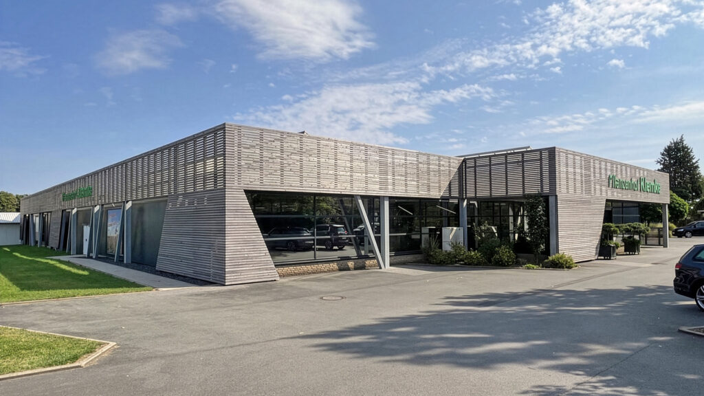 In Werl wurde für Pflanzenhof Klemke die Fassade erneuert. Die Ausführung erfolgte als Holz-Rhombus-Konstruktion auf einer bestehenden Stahlkonstruktion und verleiht dem Gebäude eine moderne, hochwertige Optik bei gleichzeitig langlebiger und robuster Bauweise.