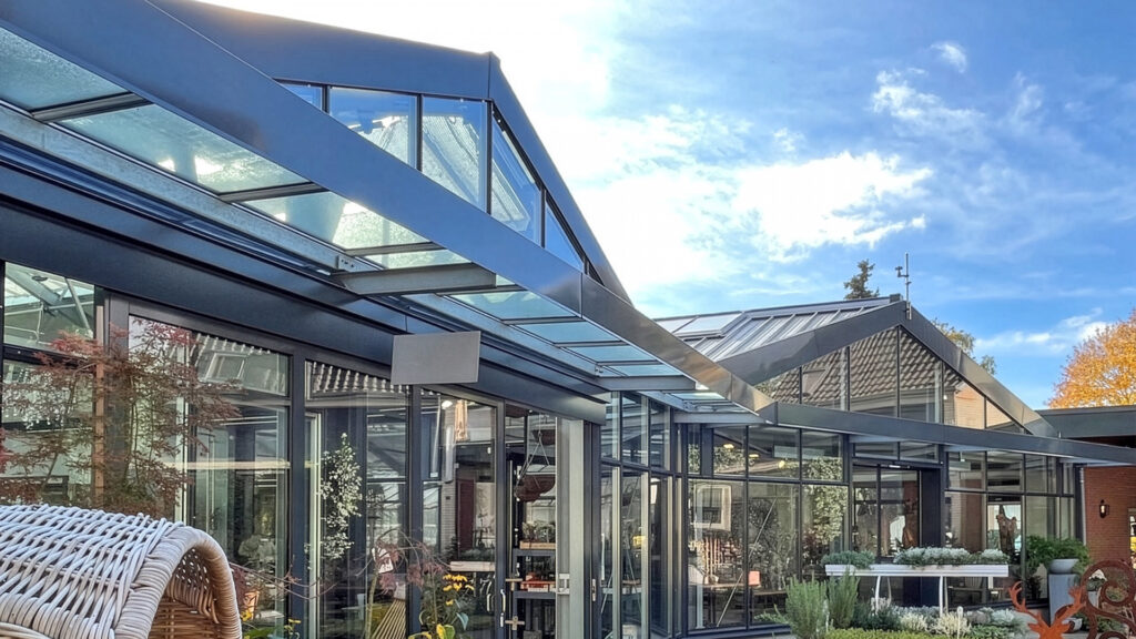 Ergänzend entstand ein Neubau eines Gewächshauses als Verkaufsraumerweiterung für die Gärtnerei, der zugleich einen integrierten Arbeitsraum umfasst. Das Gewächshaus verbindet funktionale Nutzung mit heller, einladender Verkaufsfläche und unterstützt so die effiziente Betriebsführung.