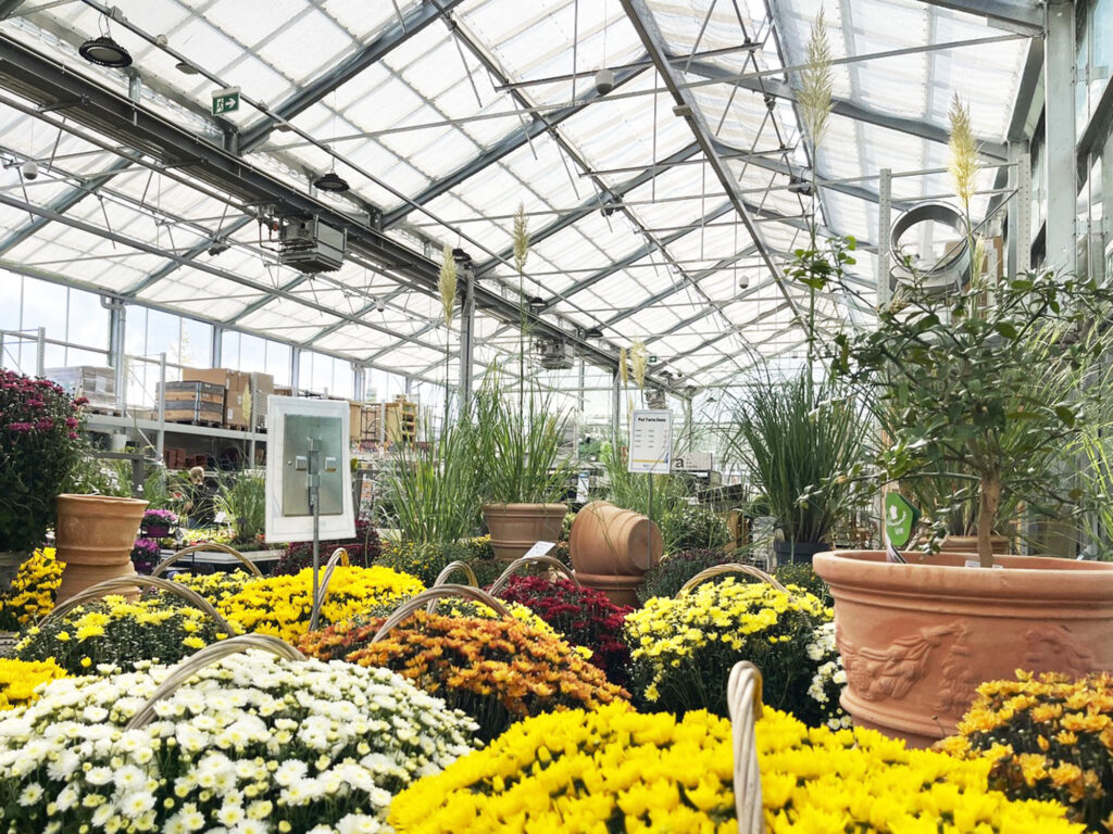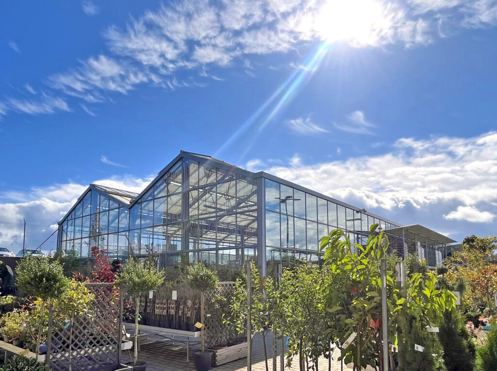 Im Rahmen des Neubaus entstand ein Gartencenter für den Baumarkt, das speziell auf die Nutzung als Verkaufsgewächshaus ausgelegt ist. Die Süd- und Westseiten wurden mit Stopsol Klassik Grün Sonnenschutzverglasung ausgestattet, die für optimale Lichtverhältnisse und Schutz vor Überhitzung sorgt. Aufgrund von Brandschutzauflagen wurde das Gebäude separat aufgestellt, ohne direkten Anschluss an den Hauptbaukörper, wodurch Sicherheit und Funktionalität gleichermaßen gewährleistet sind.