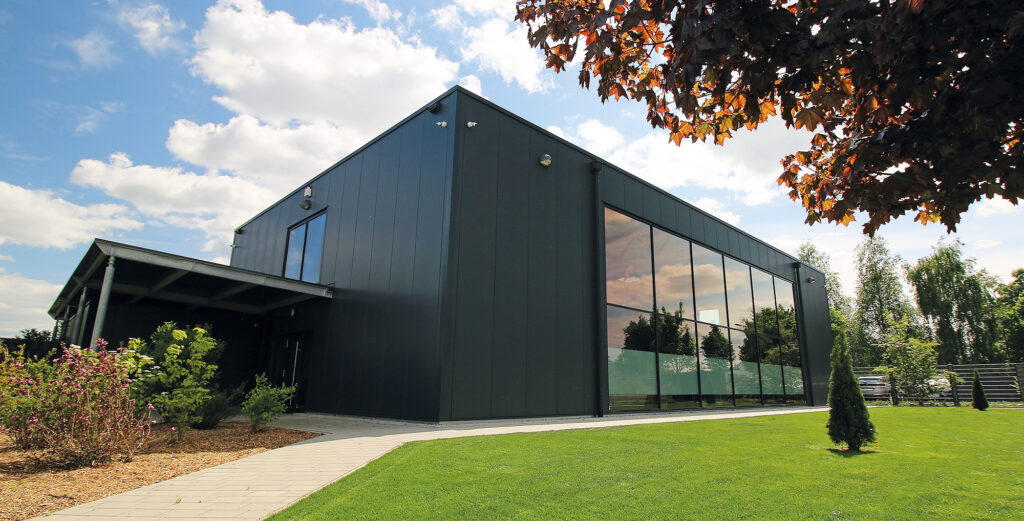 Im Ergebnis ergab sich ein Ensemble aus qualitativ sehr hochwertigen Fertigungs- und Lagerhallen und einer für die Präsentation von Zaun- und Toranlagen vorgesehenen Ausstellungshalle, die zuvor nach Kundenwünschen komplett 3D-vormodeliert und in allen technischen Details dem Auftraggeber zur Freigabe vorgelegt wurde. Quasi zwischendurch durfte PLONKA dann noch Geschick bei der Verwandlung eines vielteiligen Bürocontainerkomplexes zur architektonischen Einheit unter Beweis stellen. Ein gelungenes Beispiel für dauerhafte und auf Vertrauen basierende Partnerschaft.